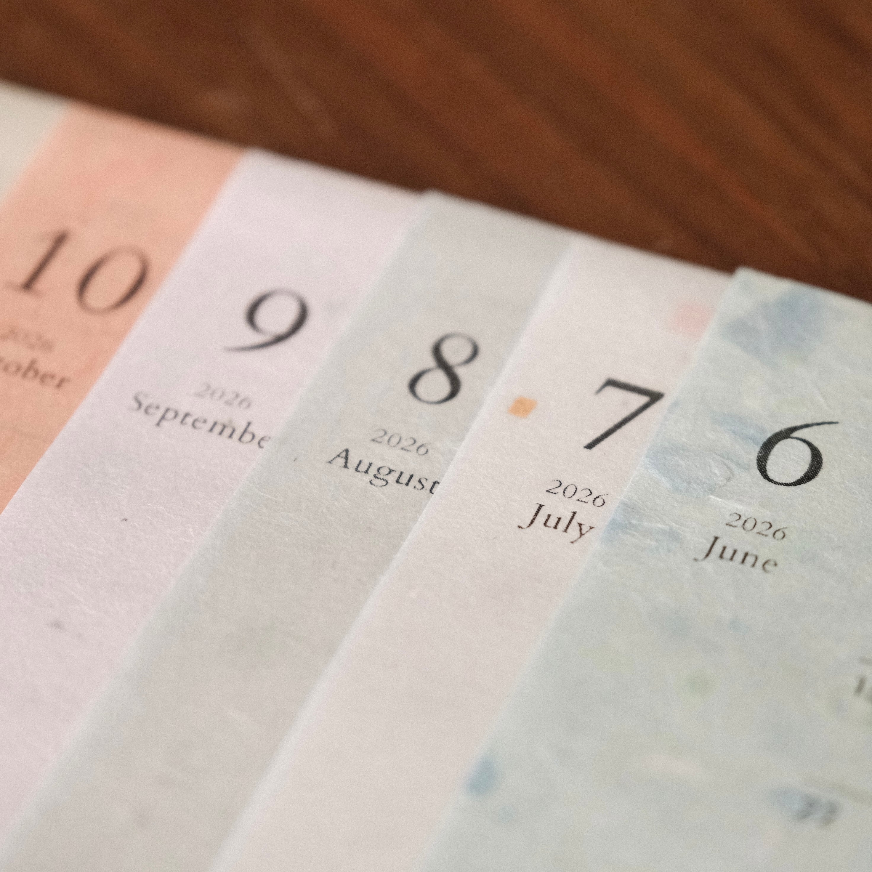 毎月異なる紙を選び、愛媛県の伝統的工芸品・大洲和紙を14種類 使用しています。