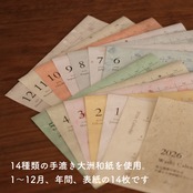 毎月異なる紙を選び、愛媛県の伝統的工芸品・大洲和紙を14種類 使用しています。